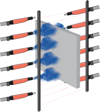 - Separación vertical de pistolas de 130 mm que optimiza las áreas de cobertura.