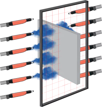- Espesor homogéneo de polvo incluso en las piezas más complejas gracias a la función de distancia independiente de las pistolas
