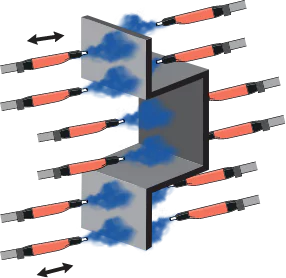 - Cierre y apertura simultáneos de todas las pistolas en dichos huecos
